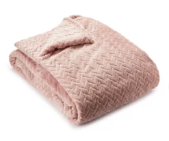 Update a guest or master bedroom with the contemporary design and soft faux fur feel of this cozy comforter from Broyhill. Its lush and lengthy fibers flaunt a textured geometric pattern in a pale pink hue for a chic way to top of your bedding arrangements.